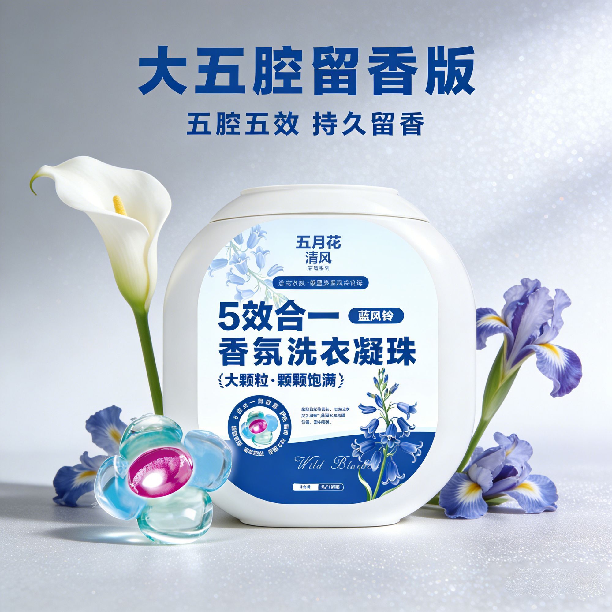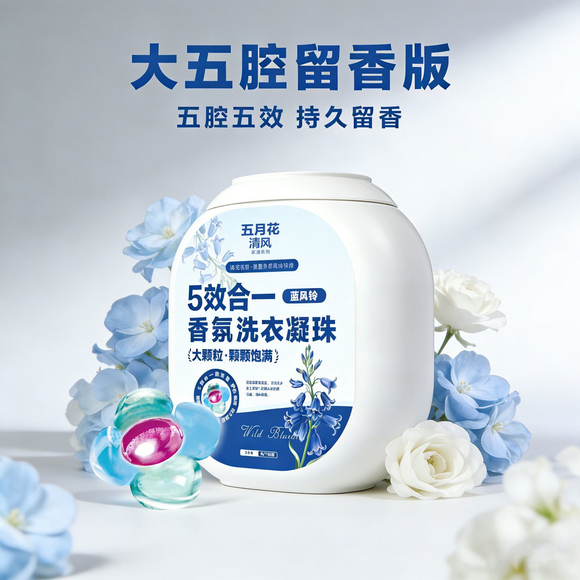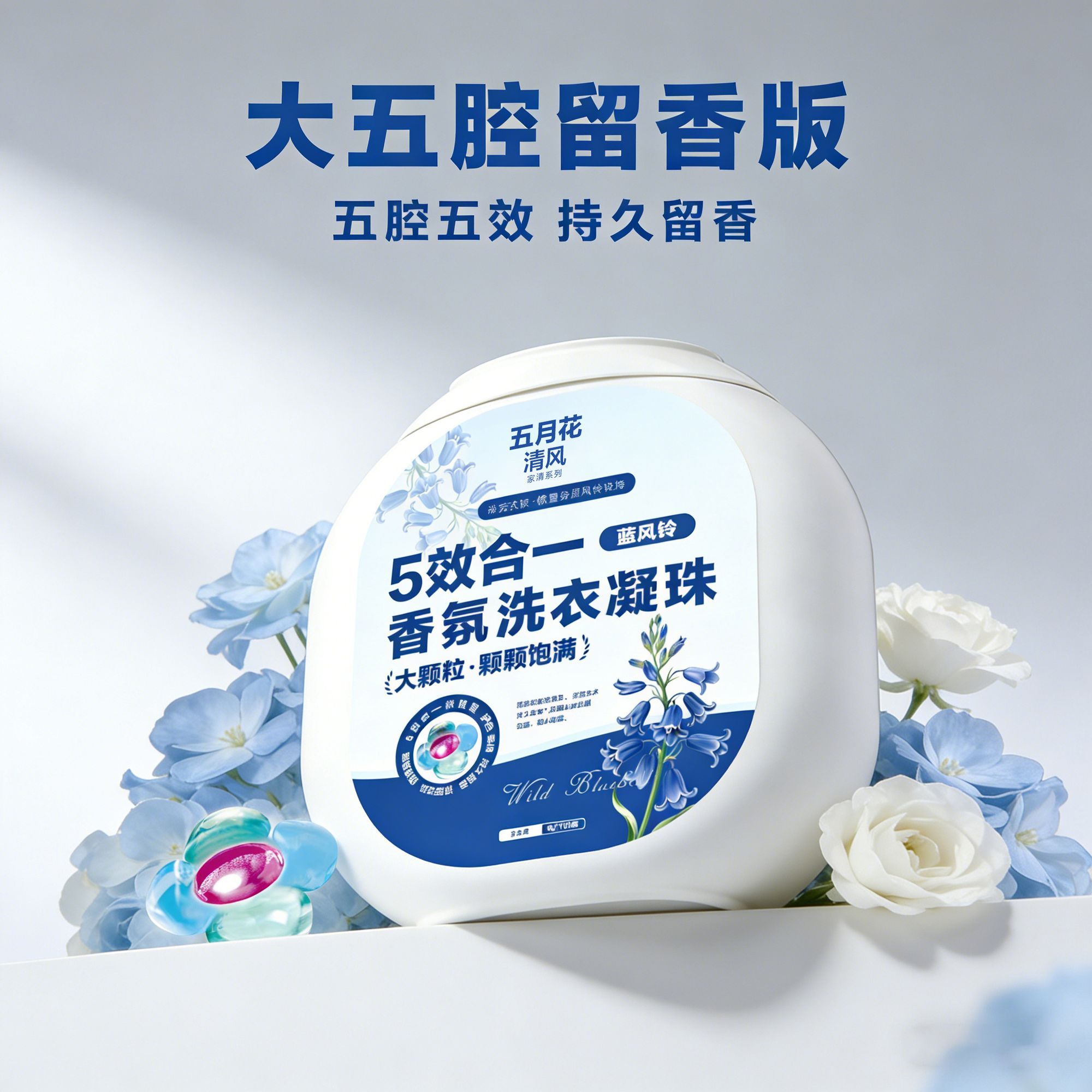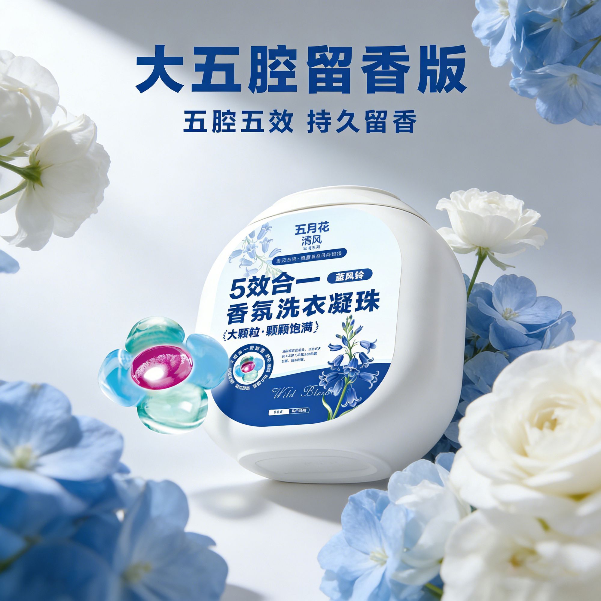五月花清风【130颗】蓝风铃香水香氛留香去污五合一洗衣凝珠