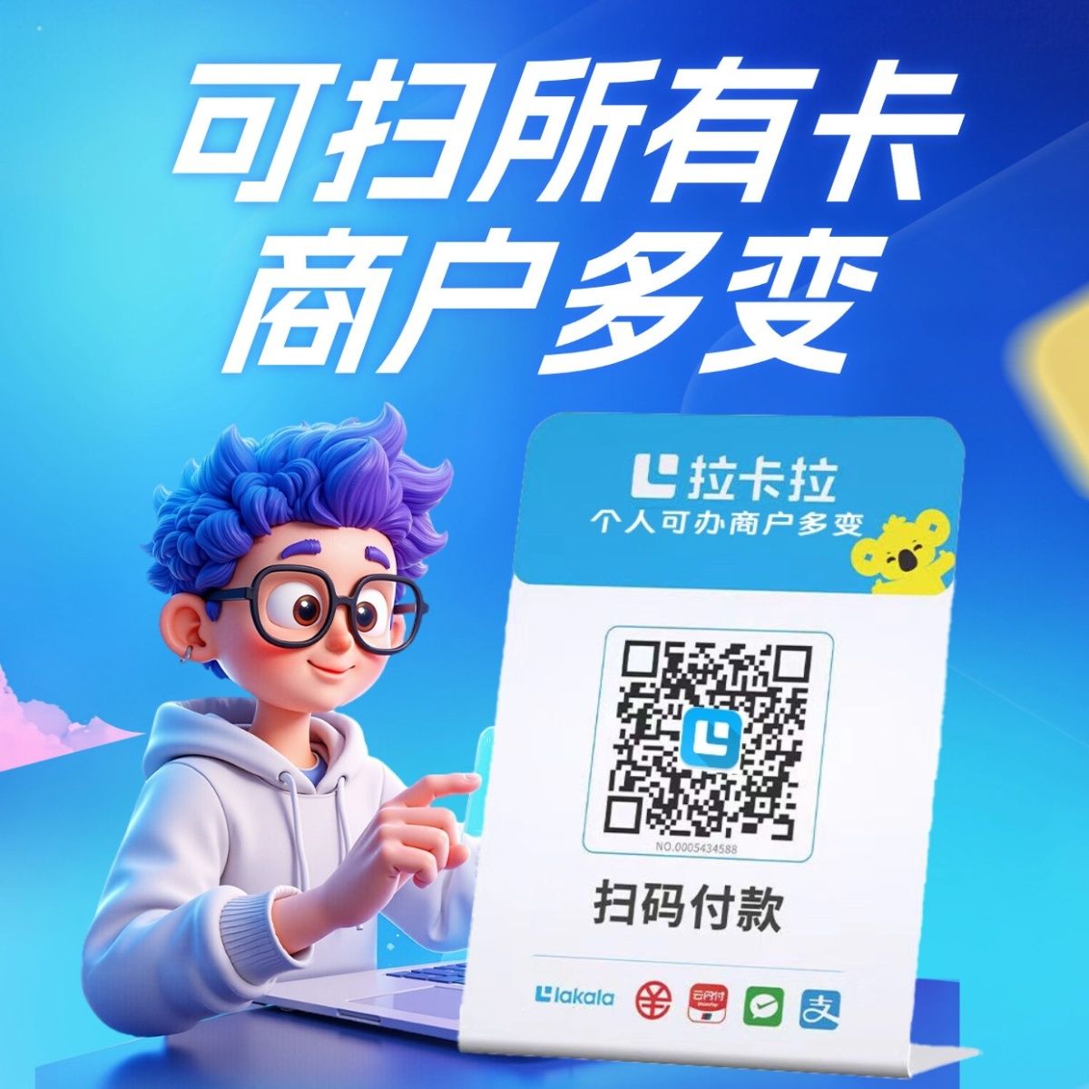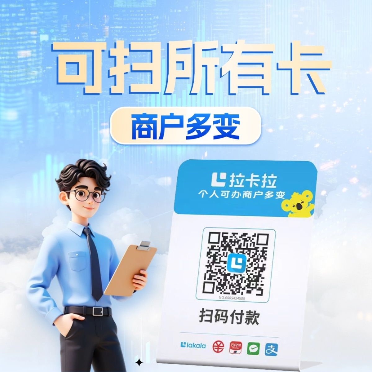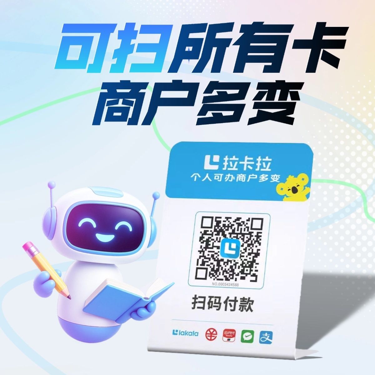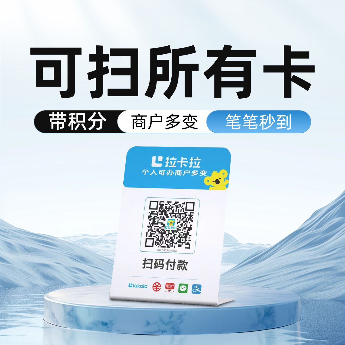 拉卡拉扫码收款移动升级收款牌子扫码支付收款码手持收银吊牌挂牌