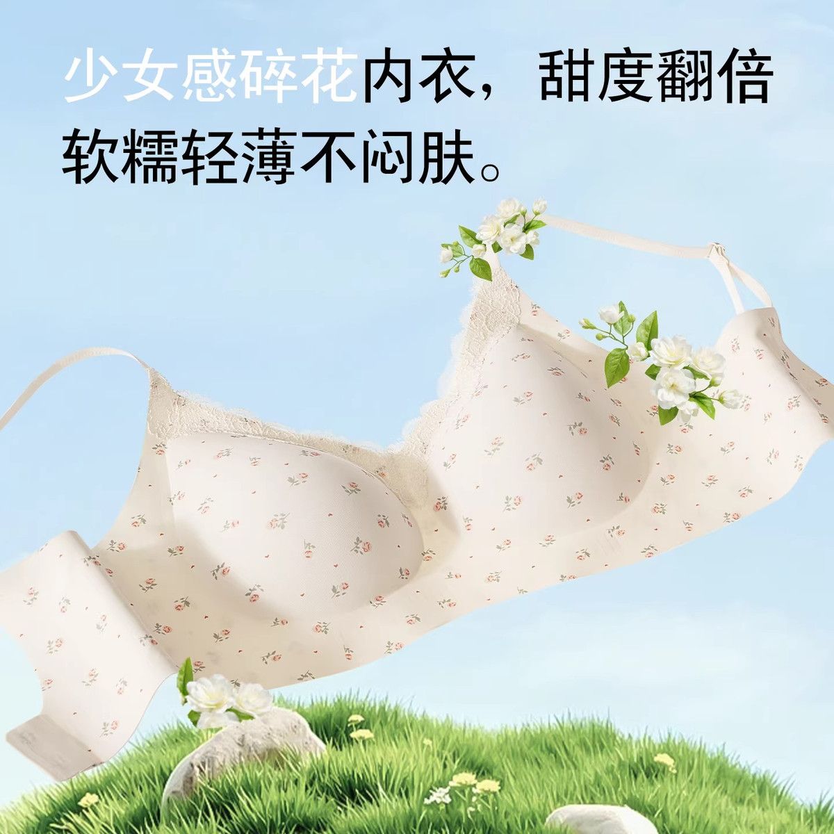 【都市丽人】蕾丝女士碎花小胸内衣法式清新甜美纯欲性感聚拢文胸【4天内发货】