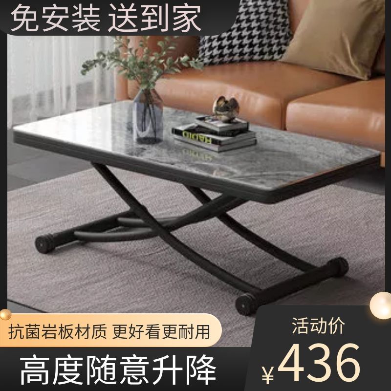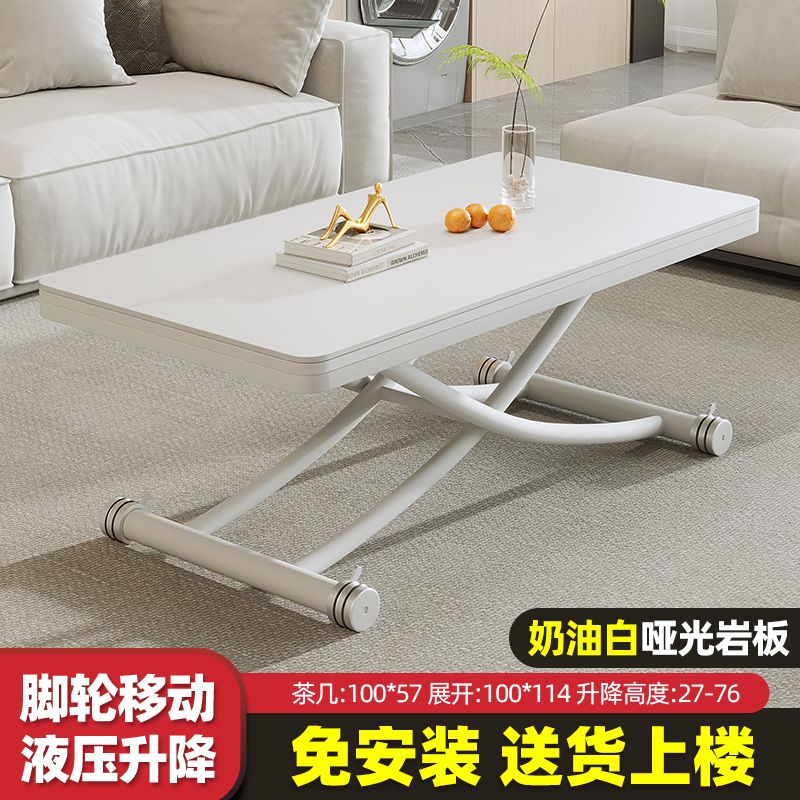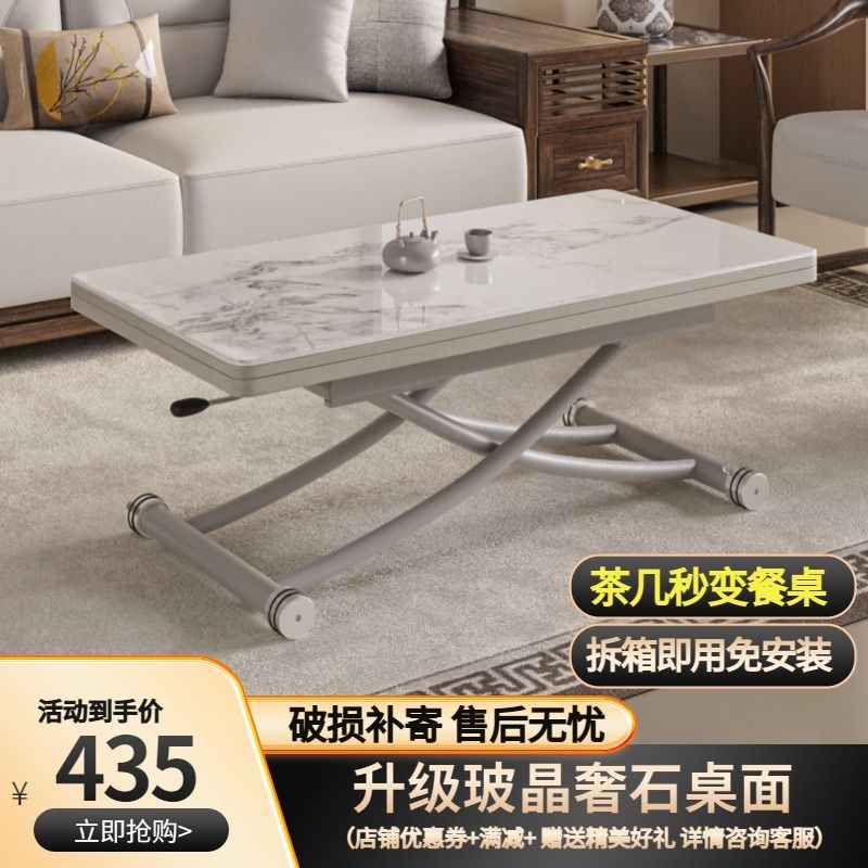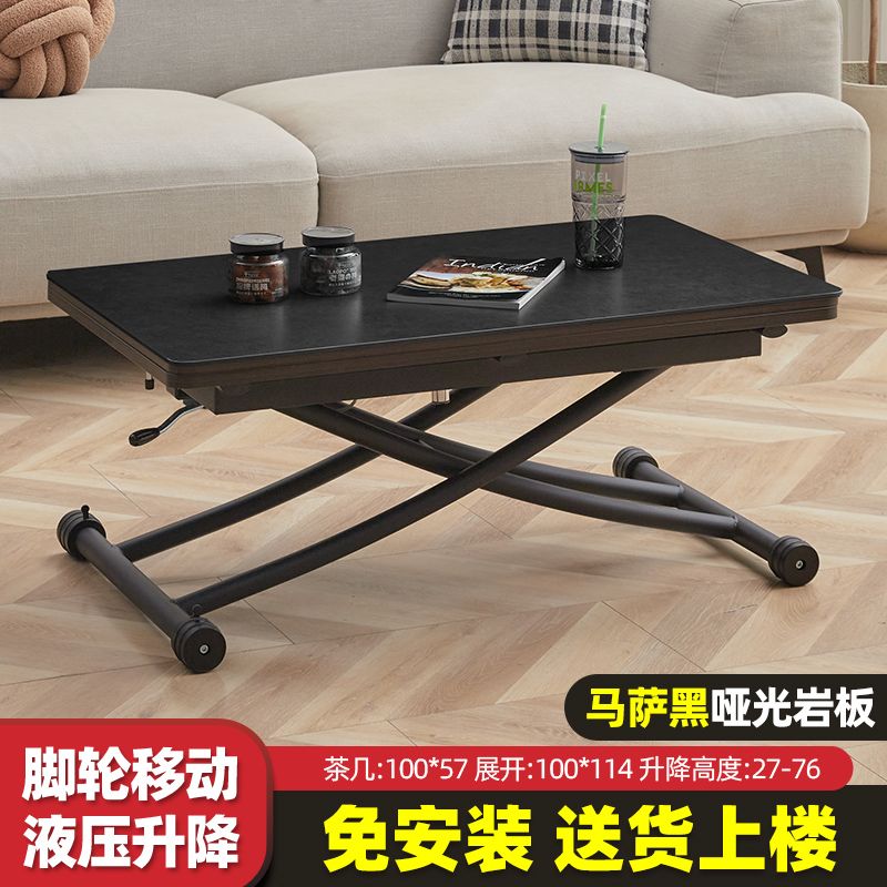 冠喻小户型多功能茶桌一体升降餐桌岩板升降茶几茶自动家用可移动