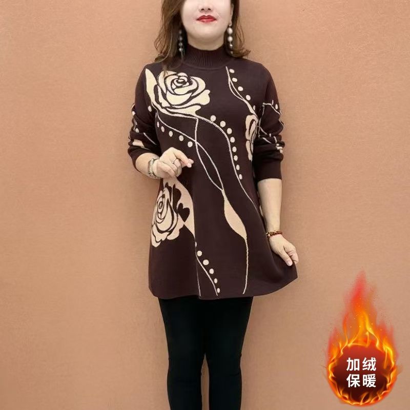 捡漏冬季时尚中长款宽松气质显瘦减龄小衫潮流保暖加绒妈妈上衣