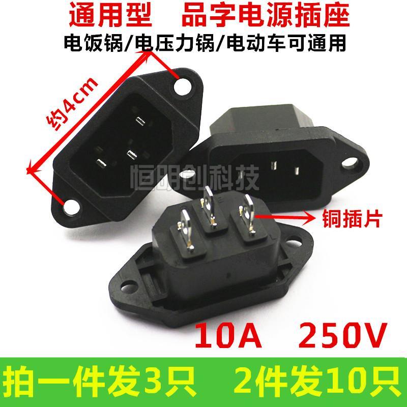 10A功率电压力锅电源插座品字三孔插片式铜脚插头电饭锅电锅配件