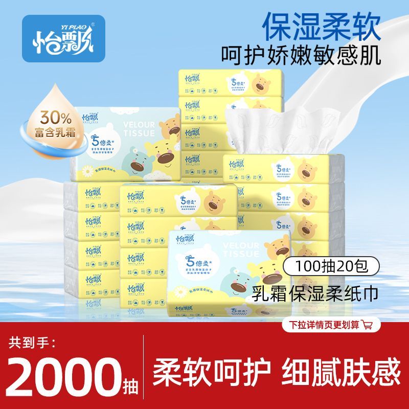 怡飘【200抽*10大包】怡飘婴儿保湿乳霜柔纸巾宝宝专用保湿云柔巾